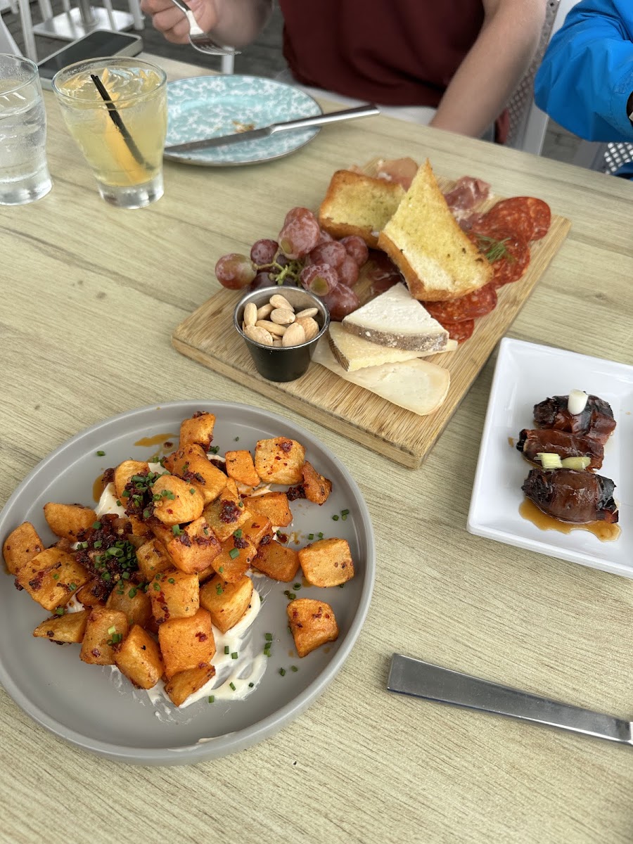 My favorite tapas spot to go to. Love being by the water and the place has shade so it's very enjoyable. So many options, all are probably delicious. Today I got the patatas which were crispy flavor potatoes with a dipping sauce under it, 10/10. Their chicken/ pork tenderloin sandwiches were also good. The chicken was $12 and port tenderloin was $10. I went half half with a friend. They were smaller than I had anticipated and the meat portion on them were underwhelming. There was mostly bread than the toppings as well, so just except little sandwiches that taste good. The whipped goat cheese is always great. We should have asked for more pita chips because there was left over cheese (we used it on our sandwiches). Waitress was nice and I always recognize the great service here.